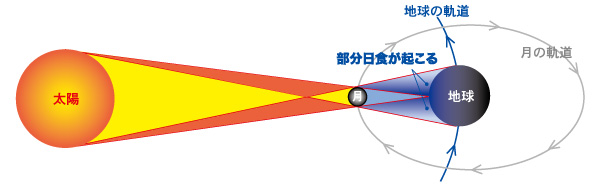 月が太陽と地球の間に入り地球に影を落とすことにより日食という現象が現れます。月の影が映る地域でのみ日食を観測することが出来ます。つまり、太陽、月、地球が一直線にならなければ起こりえない珍しい現象です。